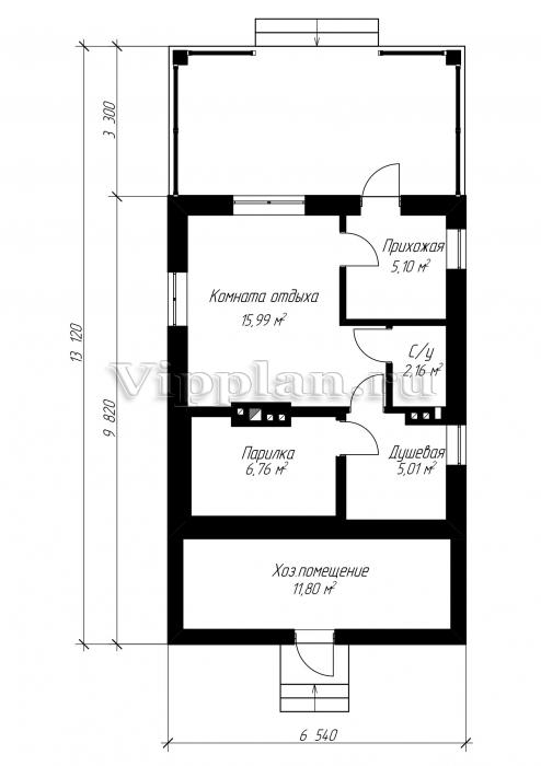 Индивидуальный проект бани с размерами здания 13,12 х 6,54.